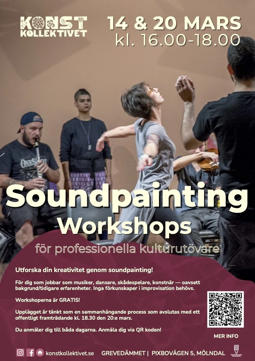 Two soundpainting workshops for professionally active musicians, dancers, actors, artists. 14th and 20th March at Konstkollektivet, Mölndal, Sweden